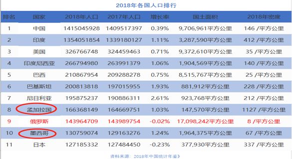 和中国比压力太大,因为中国是全球过去20年经济增长最快的国家。那么我们拿人口与俄罗斯联邦最接近的两个国家——孟加拉国和墨西哥来比较一下: