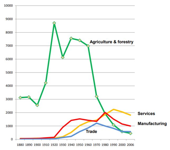 图7:列克萨支柱产业森林业产值下滑造成提供岗位迅速减少
