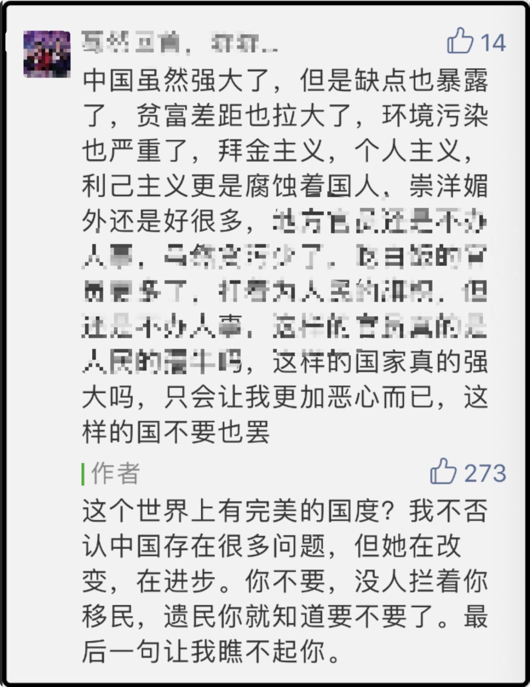 有趣的是,这些人最早的时候,总是振振有词地质疑笔者,谴责笔者是在“造谣抹黑西方”,在多个媒体平台上,更是多次发表攻击谩骂言论,给笔者扣上了“极端民族主义者”的帽子,甚至不惜造谣称笔者已经移民,大肆攻击笔者称“移民了就滚出中国”,可见这用意并不单纯。这让笔者陷入了沉思:为何西方社会的毛病说不得了?