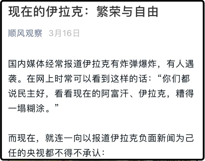 他们甚至可以违反社会学、经济学的理论,把西方各国形容成“收入全球最高,物价全球最低”的童话国度,甚至把饱受美国战争摧残的伊拉克形容成了“在美国带领下走向美好的国家”,整天醉生梦死······