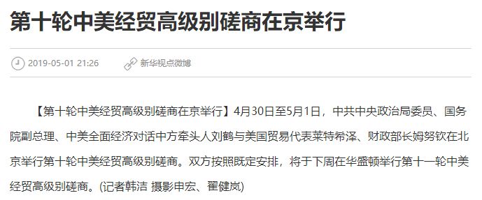 静悄悄,第十轮中美贸易谈判4月30日至5月1日在北京举行,新闻都只是一段简单描述,媒体的议论非常之少。