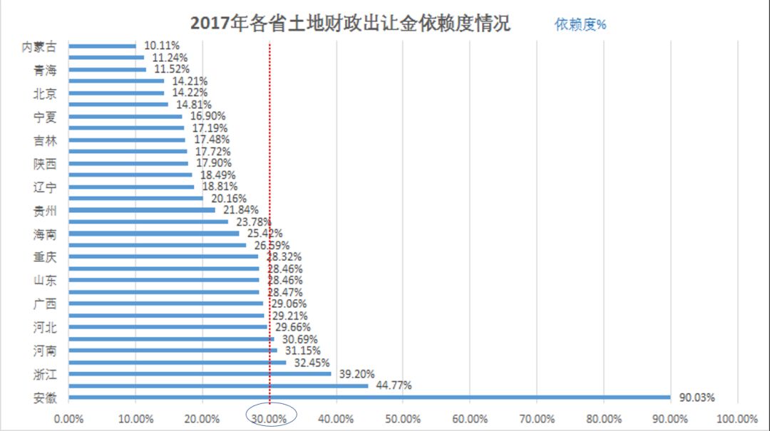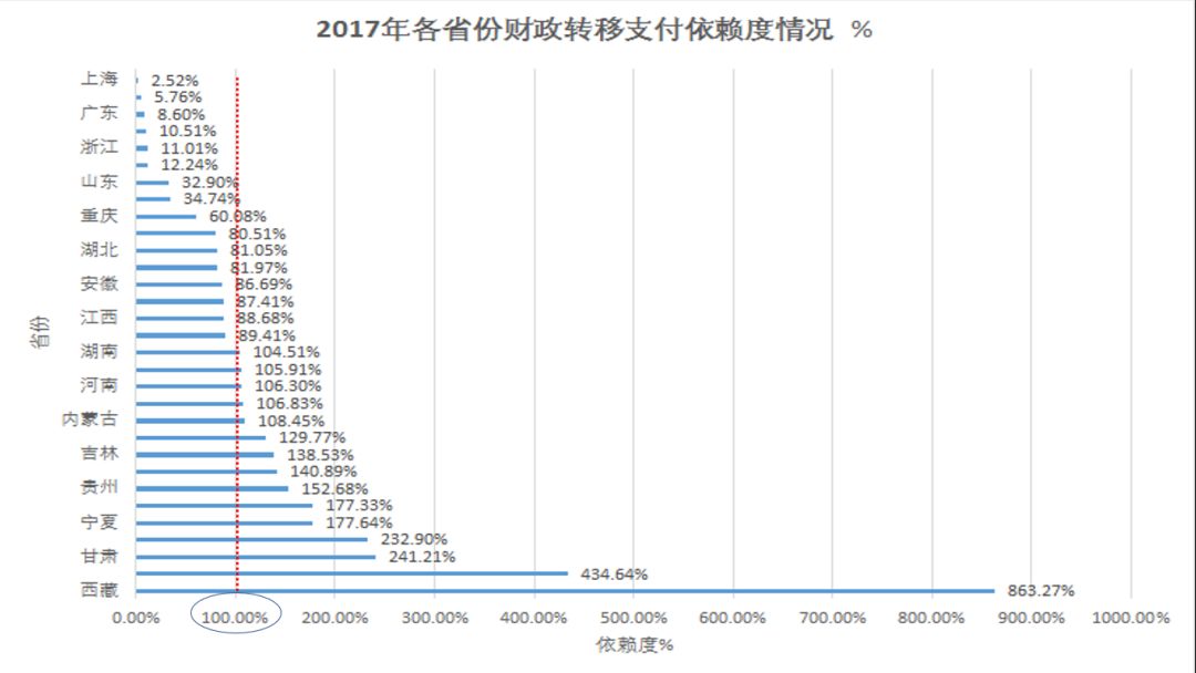 中西部各省依赖程度在30%左右的确实一大片,这只是收入构成,负债发展的中西部,收入远远盖不住每年的支出项。