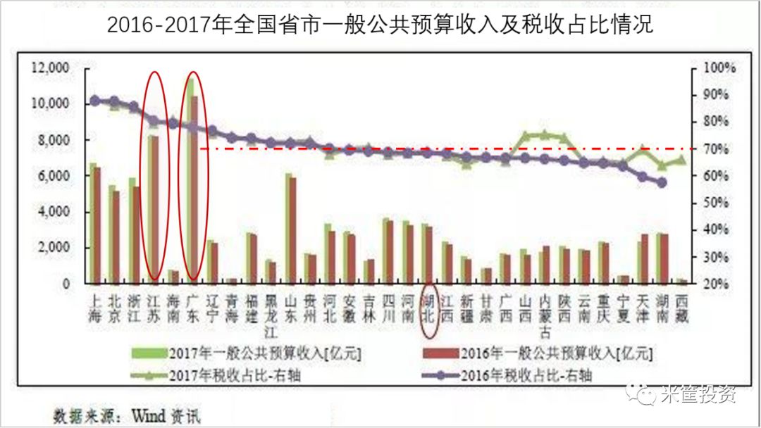 从近几年财政收入各省的税收占比来看,也只有头部的北京、上海、江苏、广东能够稳稳的站上70%以上,其它大多数强二线弱省会财政收入依然有相当一大部分依赖于手中的地和与地相关的税收。