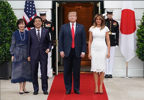 4月26日,日本首相安倍和夫人访美,在与特朗普夫妇合影时,记者让安倍和特朗普靠近点。正当安倍打算向特朗普靠近时,特朗普突然扭头对安倍说:stop!