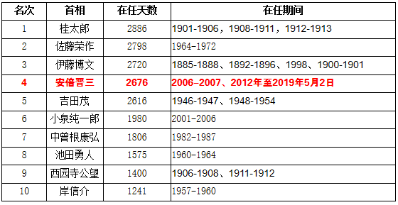 目前,安倍下一个任期到2021年结束——安倍在任天数将在2019年11月追上历代最长的桂太郎,实现最久执政。