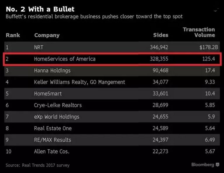 但他旗下的伯克希尔·哈撒韦早在2017年就已悄然成为美国第二大房地产经纪公司。