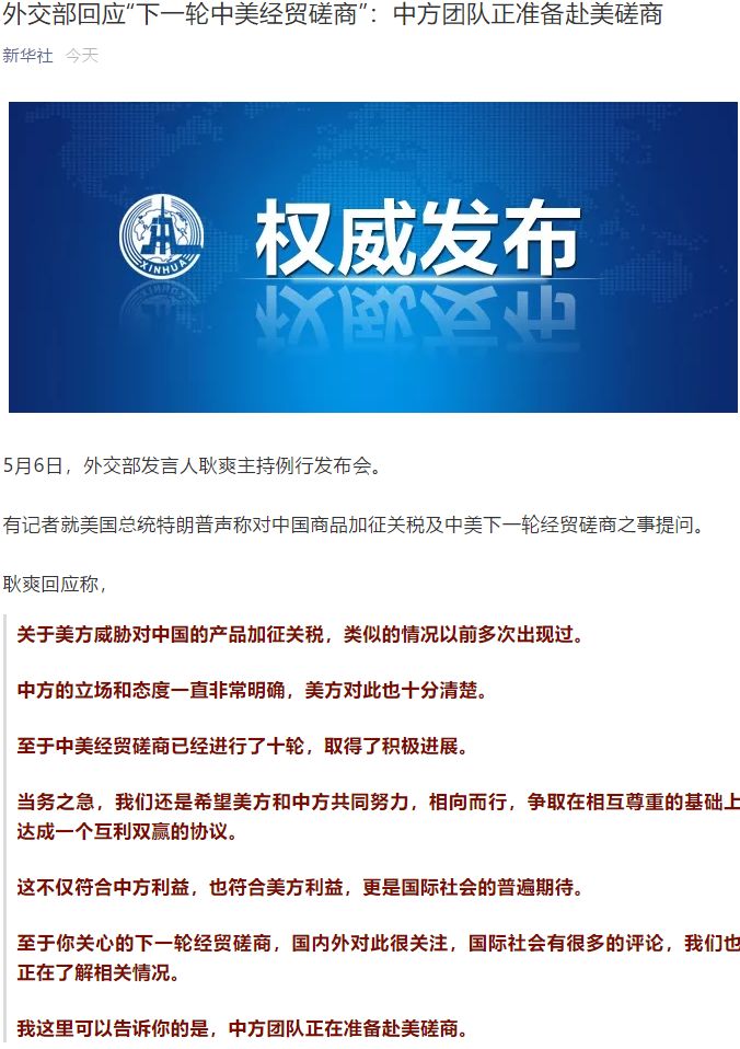 对于特朗普这种没脸没皮的行为,中国代表团保持了极大的克制,外交部发言人表示中方团队争取在互相尊重的基础上达成互利双赢的协议,而且正在准备赴美磋商。