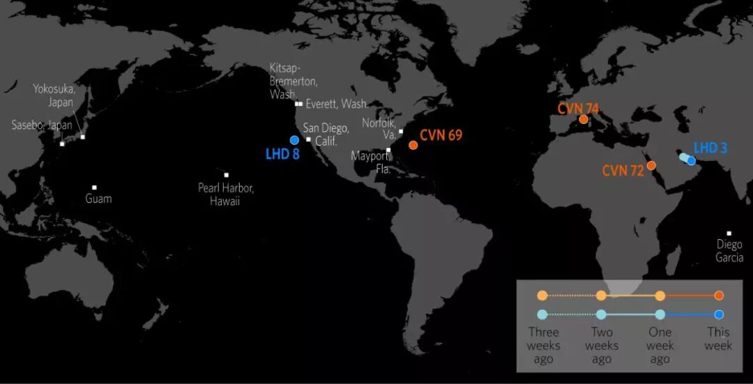 美军航母在中东的动态图(易评君独家图片,可放大查看)