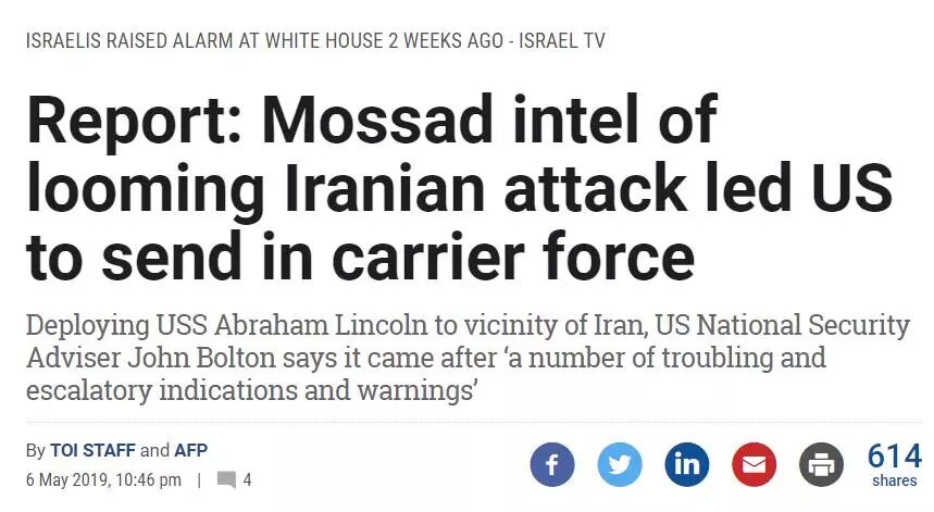 以色列的情报是美军向波斯湾派遣航母的主要由头