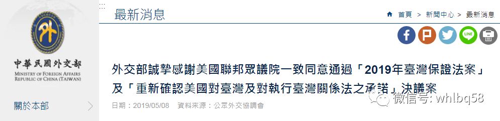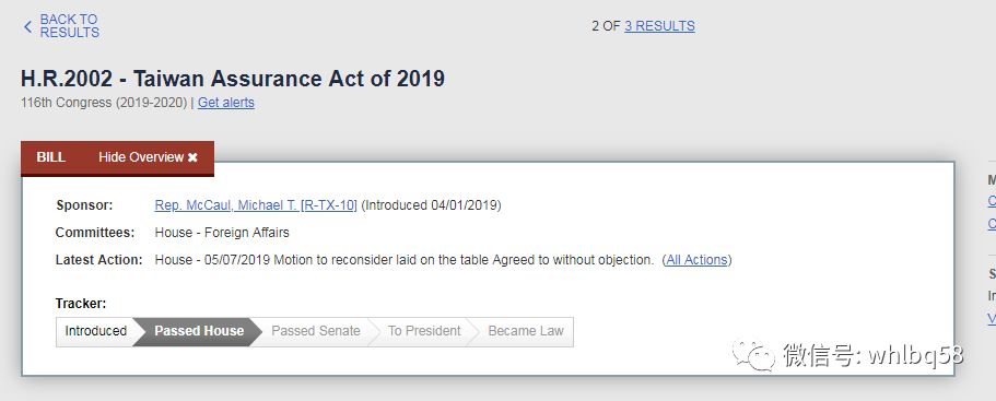 美国东部时间7日,美国众议院通过了两项涉台新法案,一项是第2002号《2019年台湾保证法案》(Taiwan Assurance Act of 2019)(以下简称《台湾保证法》),一项是第273号《重新确认美国对台湾及对执行台湾关係法之承诺》决议案(Reaffirming the United States commitment to Taiwan and to the implementatian of the Taiwan Relations Act)。