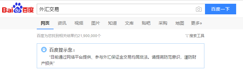 当你在百度搜外汇交易的时候,第一条就会明确提示你这一点!