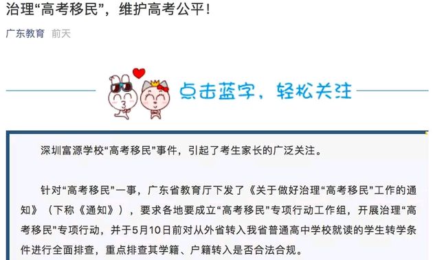 于是,为了子女前程的家长们,迅速联合起来找到教委要说法,而广东省教育厅也公布将于5月10日对外省转入的学生进行学籍户籍的全面排查。