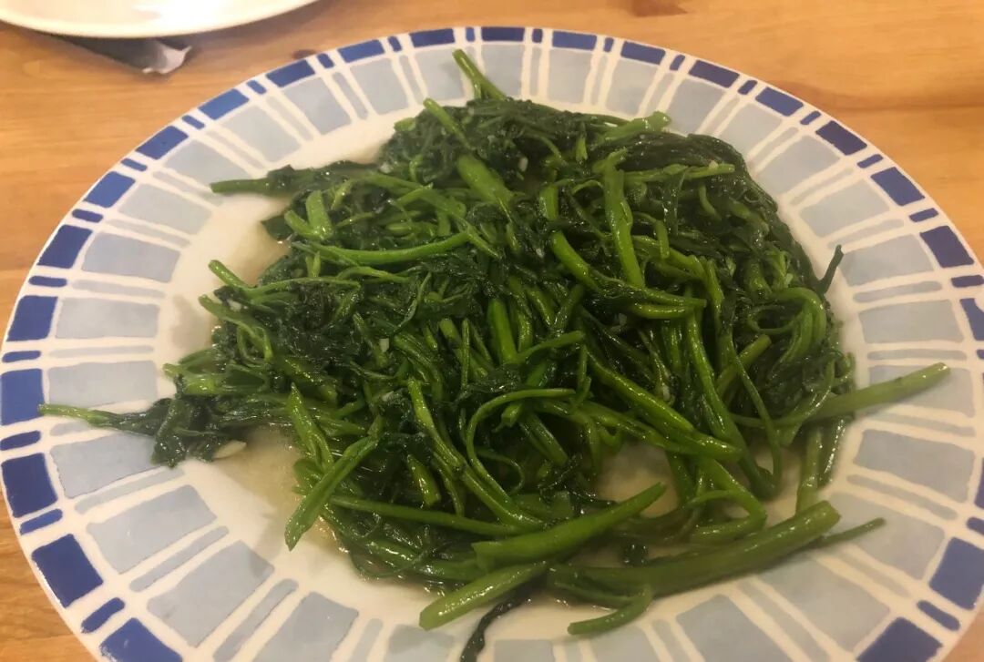 上图:前两日,和朋友在中餐馆吃“空心菜”,这一盘塞牙缝的菜将近100人民币,两人三菜一汤350人民币(菜分量请参照上图),一小碗米饭(正常成人吃2-3碗)16元人民币,不算最贵也不算便宜,总之不是富豪绝对不能天天下馆子。当地餐饮消费税高达22%。