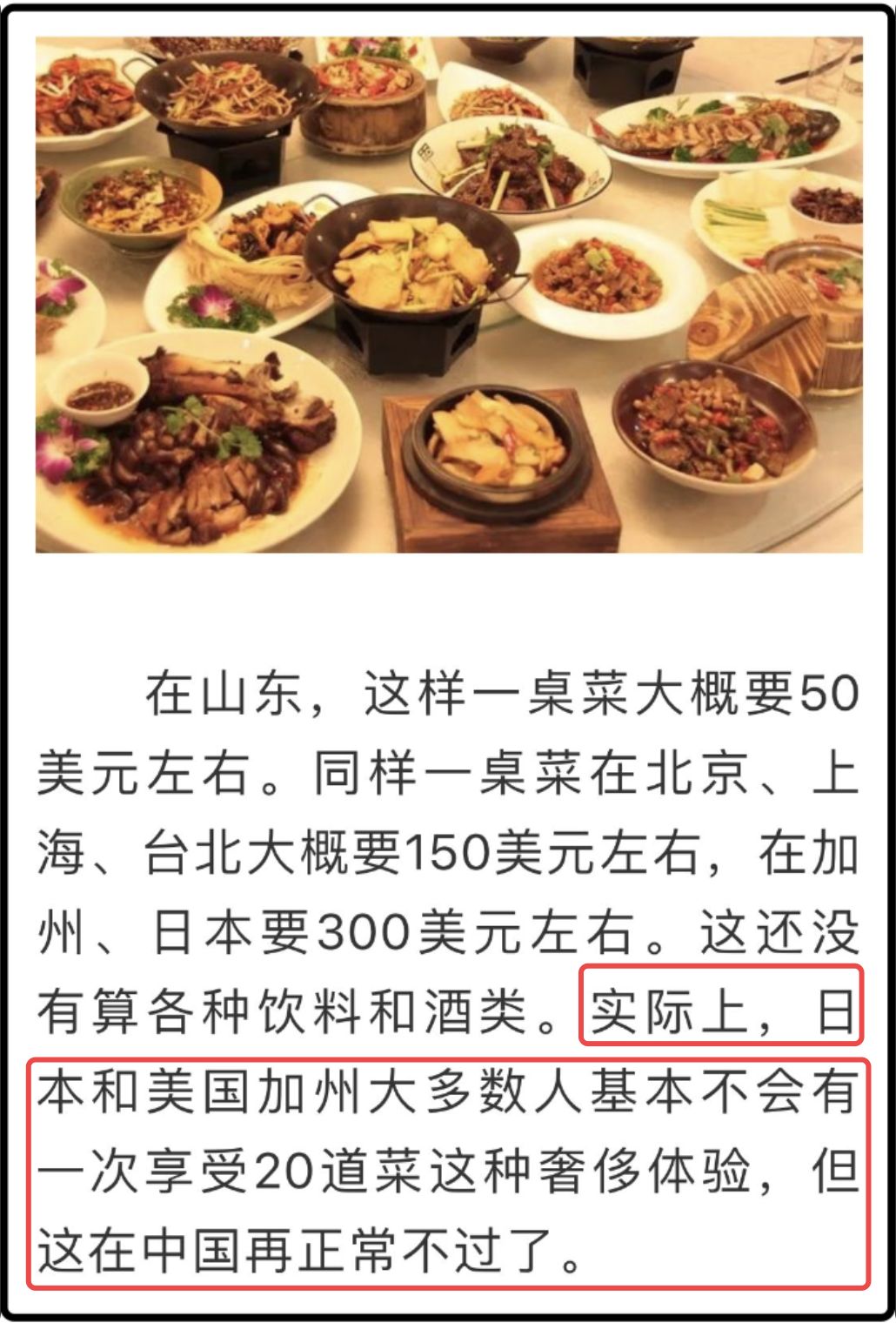 而在Janus Dongye先生的回答中,最引人注意的,还是那段“日本和美国多数人基本享受不到像中国人那样寻常的大餐”的表达: