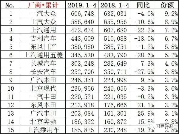 2019年1-4月,东风汽车销量仅仅下滑-1.3%,广汽集团整体下滑-3.17%,而上汽集团则同比减少-16.8%,而长安汽车累计下滑-27.9%,对于部分城市工业的冲击可想而知。