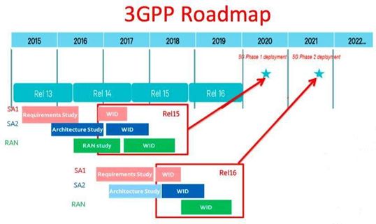 5G标准的冻结都是有时间节点的。如上图所示,在2019年,原则上所有的5G标准都是要冻结的。