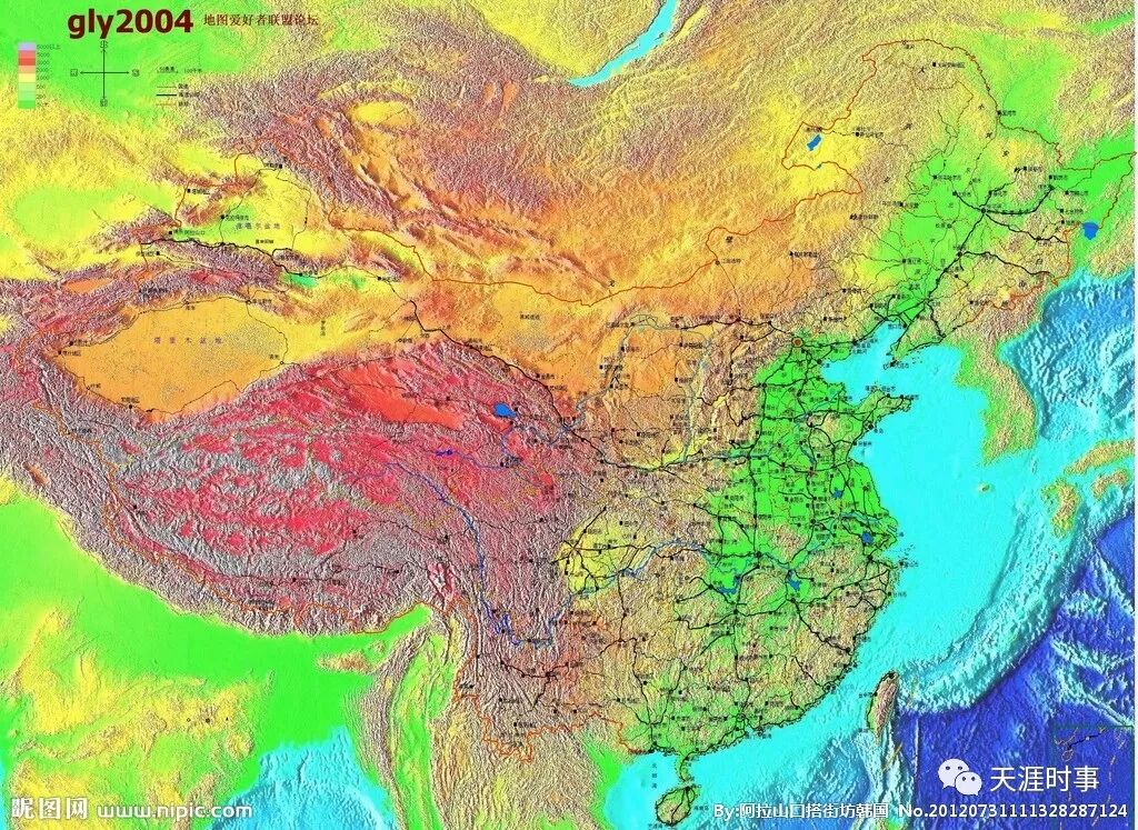 我相信大家看到这个地形图,就会知道中国的版图为什么是现在这个形状了——地形控制。