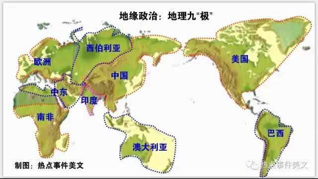 下面我们再来看看世界地理格局:我们可以按照地理位置将世界划分为“九极”。