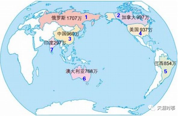 在这“九极”中,巴西、澳大利亚由于面积相对较小,而且处于热带地区(不是最适合人类生存),因此被排除在外,而非洲虽然面积较大,但是其处于热带地区,且存在大量的沙漠也不是主体,而西伯利亚地区处于极寒地带,而且处于亚欧大陆的中部,且没有暖水港口(北冰洋只有几个月解封)。