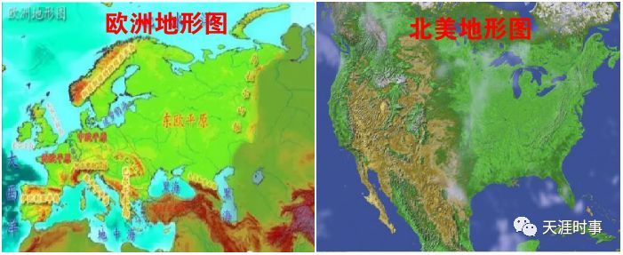 中国的地形与北美接近,而与欧洲形成强烈的反差。