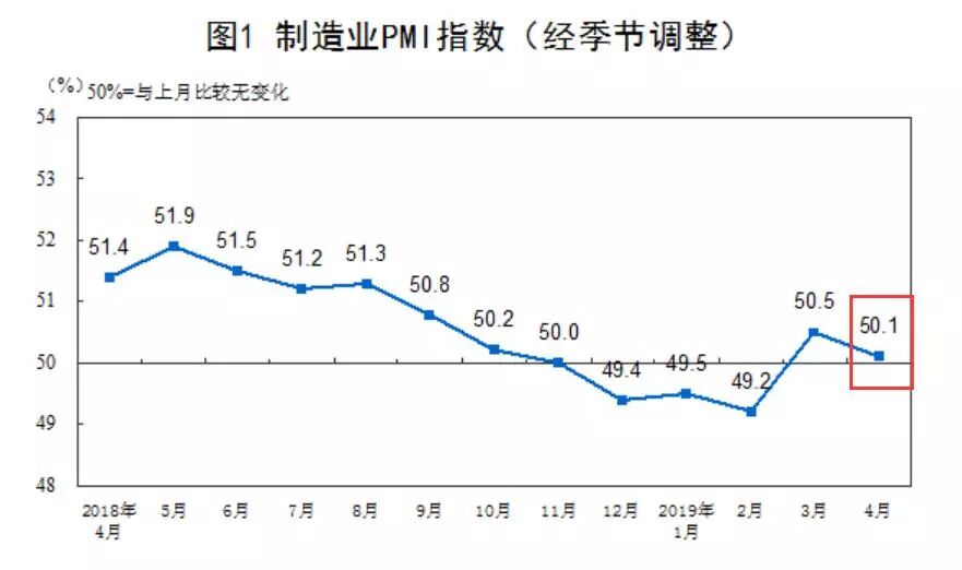 上图是前两天统计局公布的“制造业采购经理人指数”,也是回落的。但没有跌破50点这个荣枯线。