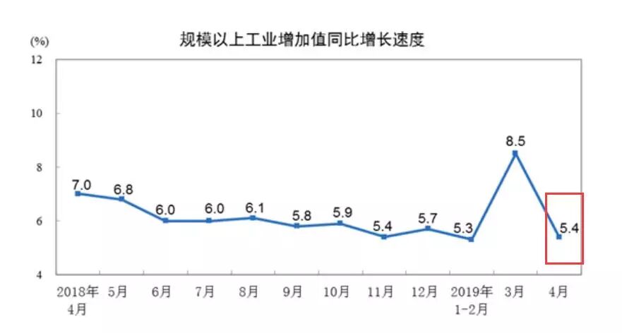 上图是“规模以上工业增加值”的同比增速,可以看出在4月出现了显著的拐点。统计局解释说,这跟“税改落地前的企业提前备货”有关。