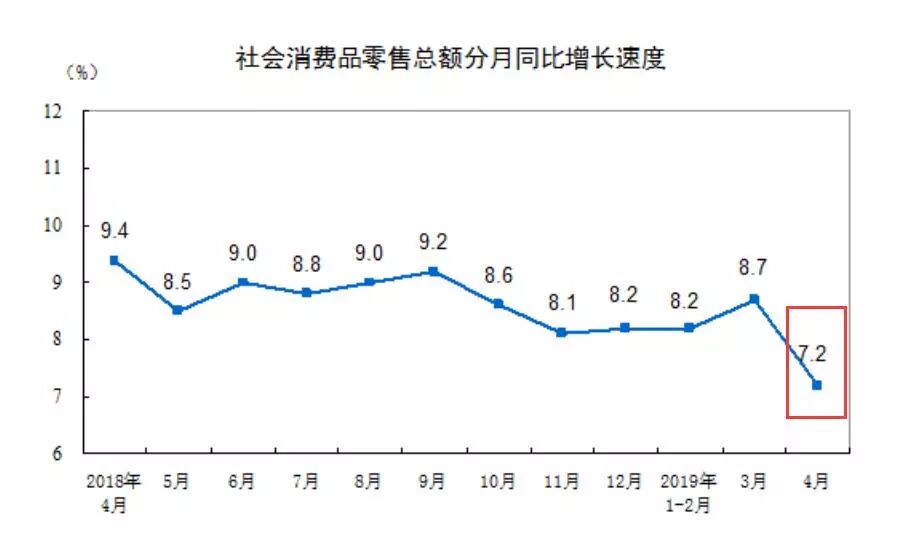 上图是“社会消费品零售总额”的增长情况,也在4月出现了拐点。