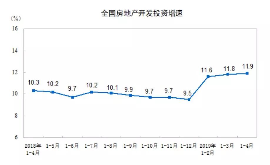 另外,国家统计局还告诉我们。2019年1—4月份,全国房地产开发投资34217亿元,全国固定资产投资(不含农户)155747亿元,全国投资方面的“房地产依赖度”为22%。去年同期则为19.8%。
