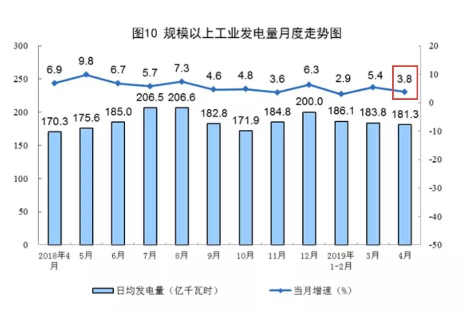 上图是发电量的增长情况,4月同比增速为3.8%,也低于GDP增速。