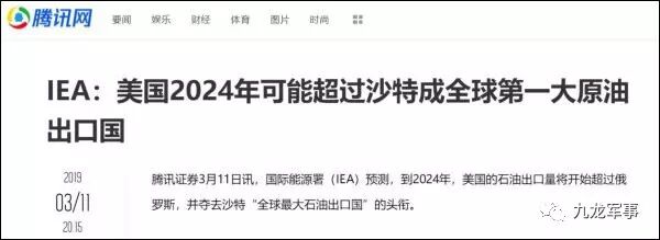 国际能源署(IEA)在今年3月作出预测,到2024年美国将成为世界第一大石油出口国。
