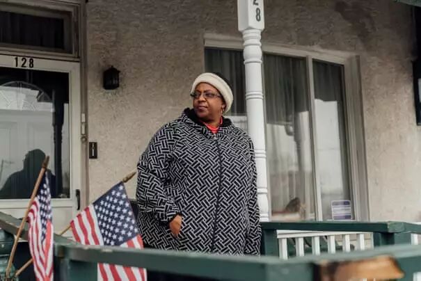 (图为凯茜·莫尔斯「Cathy Morse」站在家中的门廊上,她也想搬离切斯特,但其母亲年事已高,无法离开 图源:卫报)