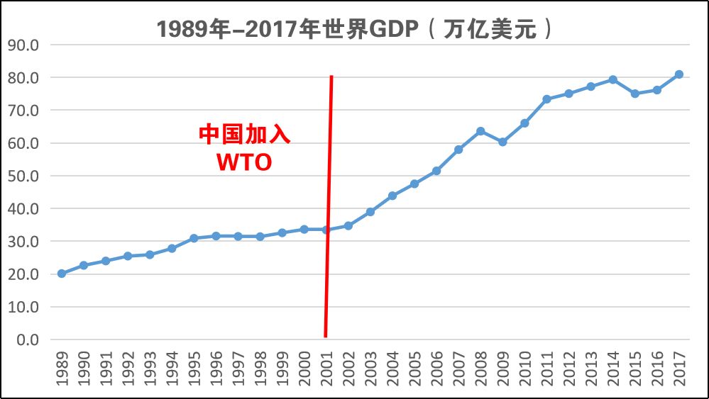 很长一段时间内,中国、欧美日等国家都很高兴,各自升级的速度都加快了——中国加入WTO后,世界经济呼呼往上走啊!