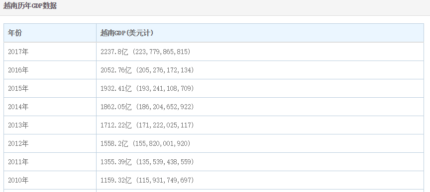 然而越南于1986开始的“革新开放”效果并不明显,其2017年的GDP只有2238亿美元,还不到广西省的3/4。