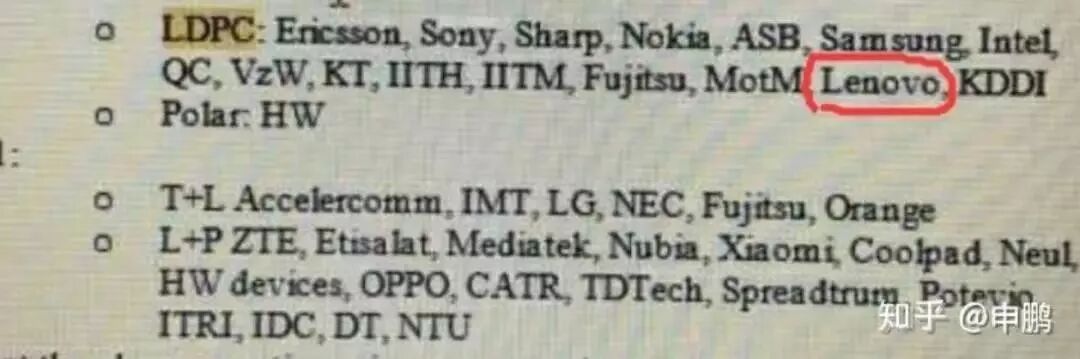 从上图可以看出,支持LDPC的都是清一色外国企业:高通、索尼、诺基亚、三星、英特尔……还有红圈内的联想。