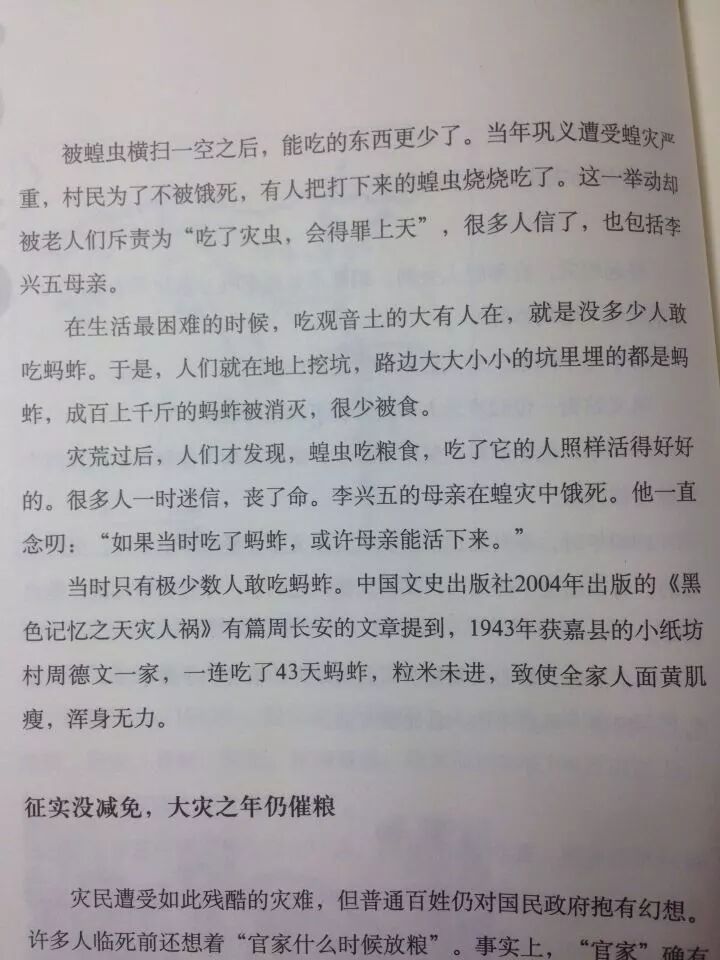 也许限于当时的农业技术水平,蝗灾无法防治,但在灾情爆发之后,如果能有科普告诉全民吃蚂蚱可以充饥,不用害怕“得罪上天”,很多家庭可能就活下来了。
