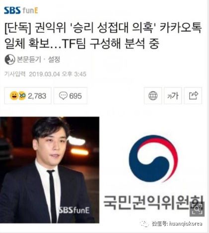 同时,韩国国民权益委员会表示已经得到了包括胜利和公司代表与多名艺人参与的聊天记录,获取了胜利在内的有关性贿赂嫌疑证据。