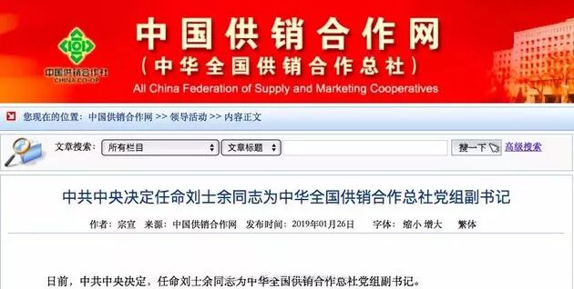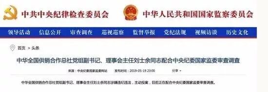5月19日夜,中央纪委国家监委网站发布消息:中华全国供销合作总社(下称供销总社)党组副书记、理事会主任刘士余同志涉嫌违纪违法,主动投案,目前正在配合中央纪委国家监委审查调查。