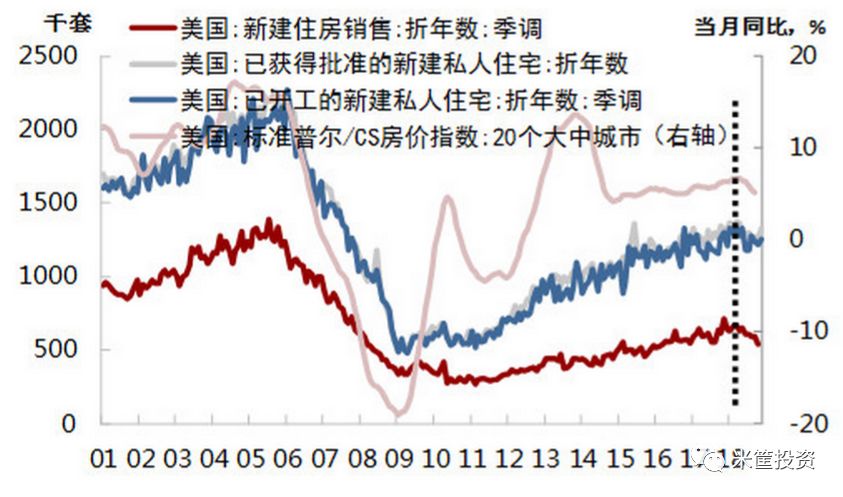 美国旧房和新房销售套数在2017年11月见顶后震荡回落,美国新房营建许可和新房开工套数在2018年3月见顶后也开始震荡回落。