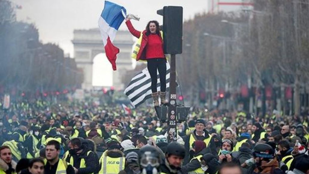 2018年,法国总统马克龙说了一句“要振兴欧洲,要建立欧洲军队,要让欧洲像中国和美国一样强大”之后,被特朗普戏谑和嘲讽,随后法国境内反动言论、民粹言论骤然走高,以黄背心为主的“法国颜色革命”爆发。