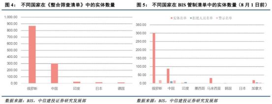 以国家分析,在所有部门的整合清单中,中国受到管制或制裁的机构和个人高达302项,仅次于俄罗斯。与之对应,印度、德国和日本受管制数量均不超过30项。