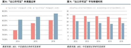 以“出口许可证”申请分析,中国申请许可证的获批率,低于世界平均水平;中国申请许可证的审理时间,高于世界平均水平。