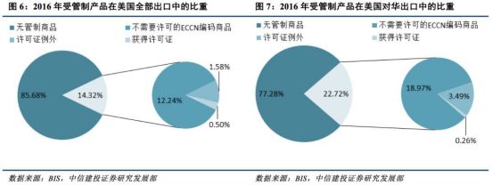 以进口商品分析,2016年中国对美国进口的1150亿美元商品中,有22.7%受到了出口管制条例的监控,这一占比远高于世界平均的14.3%。