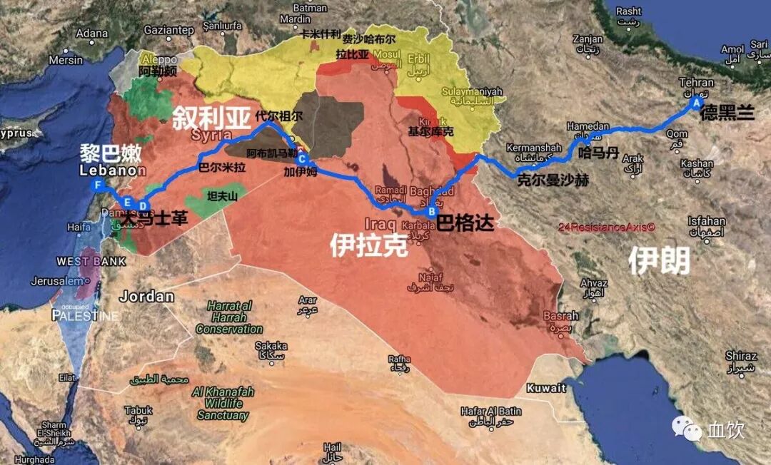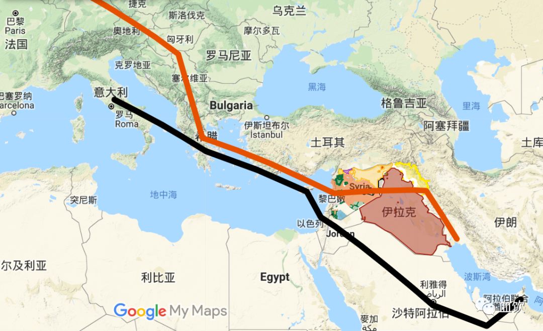 图中黑色线为B计划管道,红色为什叶派管线。