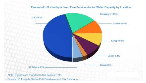 2017年,81%美国本土的半导体硅晶圆是被美国半导体公司消耗。而总部位于亚太地区的公司,只消耗了美国总晶圆的10%。