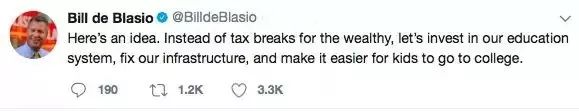 就连年入22万美元的纽约市长,也发推吐槽,说自己付不起两个孩子的学费了。