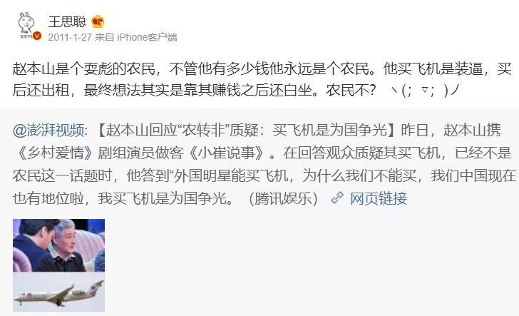 娱乐圈纪检委王思聪也在微博上煽风点火,diss赵本山: