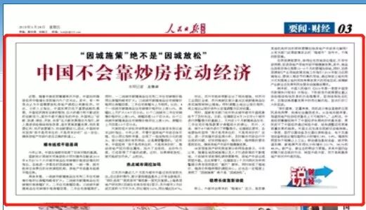 5月24日,人民日报海外版A03版刊发了一篇名为《中国不会靠炒房拉动经济》的报道,报道说: