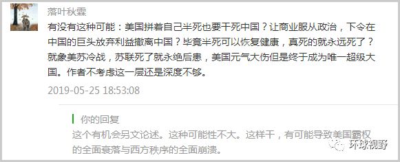 退一万步来说,就算美国真的下决心干到底,我们中国目前也有能力摧毁全球产业链,只是这样的杀手锏不到万不得已我们不会随便用。