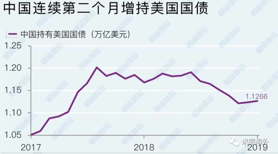 2019年1月,中国共持有1.1266万亿美债,相当于美国欠每个中国人5700元人民币。