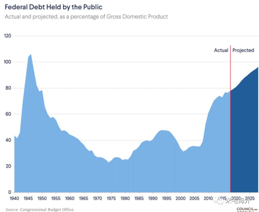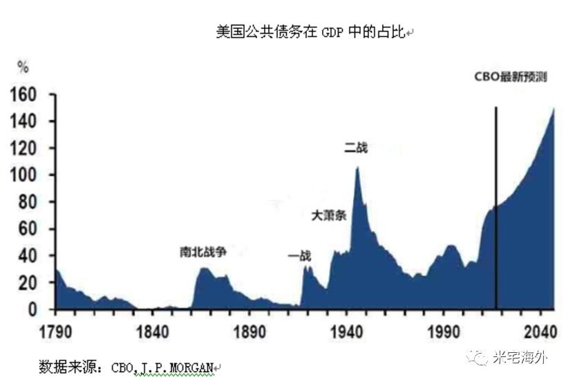 国际货币基金组织预测,在2040年,美国债务将是GDP的1.6倍,已经入不敷出。
